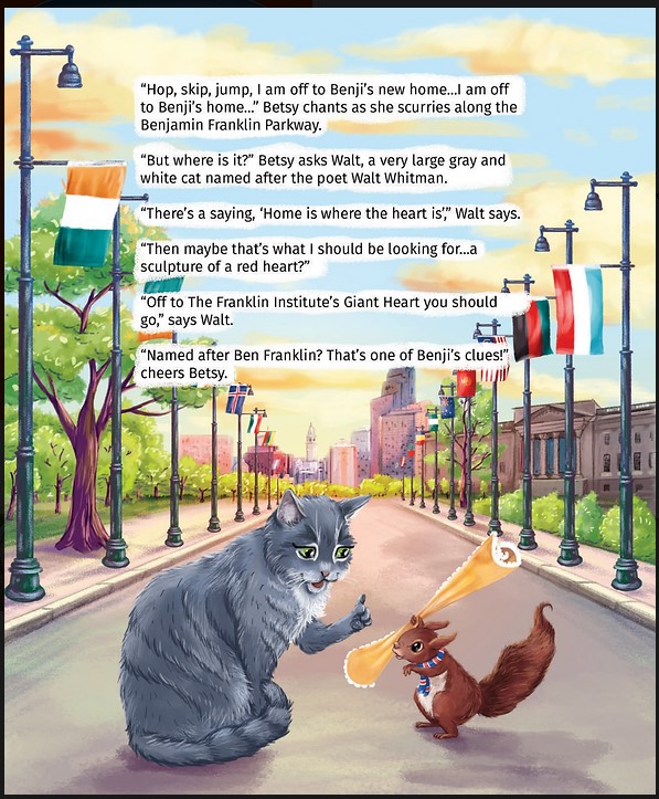 Kids will have a great time reading this book as they join Betsy the Squirrel on her colorful and playful journey through Philadelphia as she searches for her pal Benji’s party.